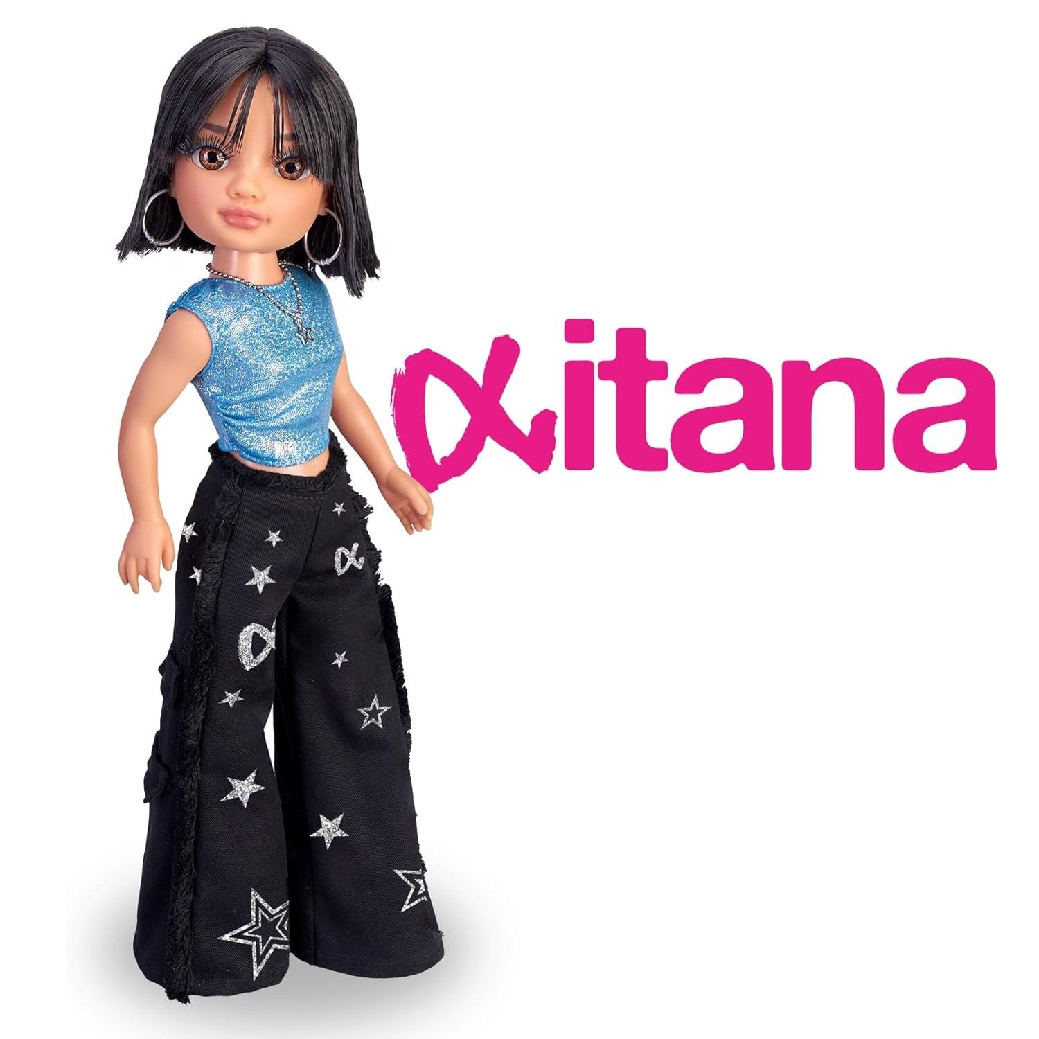 Llega a la colección de las muñecas Nancy, la nueva Nancy en colaboración con la sensacional cantante del momento, Aitana. La muñeca lleva el look completo de la cantante Aitana, un conjunto exclusivo de su tour Era Alpha que encantará a todos los fans. ¡Prepárate para brillar con estilo! El conjunto incluye un top azul deslumbrante, un pantalón ancho negro adornado con flecos y estrellas plateadas, y unas botas negras de lo más chic, igual que Aitana. Es la misma ropa que lucirá Nancy en sus conciertos y próximo videoclip. ¡Serás la envidia de todas tus amigas! La muñeca tiene un pelo castaño oscuro corto con un flequillo adorable que realza su belleza. Pero eso no es todo, esta Nancy viene cargada de detalles. Luce unos pendientes grandes y un collar espectacular que complementan a la perfección su estilo. Además, su maquillaje azul resalta sus ojos y lleva un tatuaje alpha muy trendy. Con una altura de 45 cm, esta muñeca Nancy es adecuada para niños y niñas a partir de 3 años. Es el regalo perfecto para cualquier fan de Aitana o para aquellos que deseen tener una muñeca de moda con todos los detalles que la hacen única.