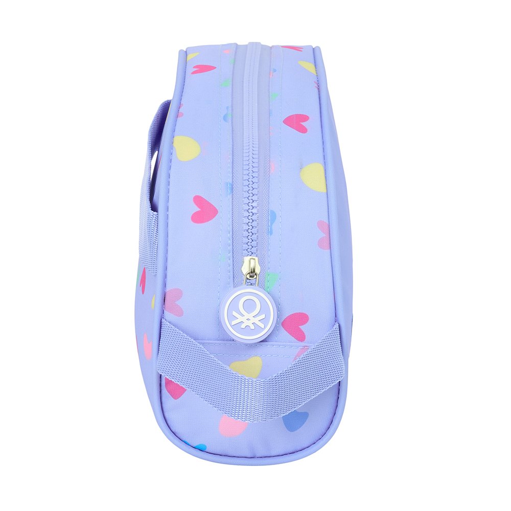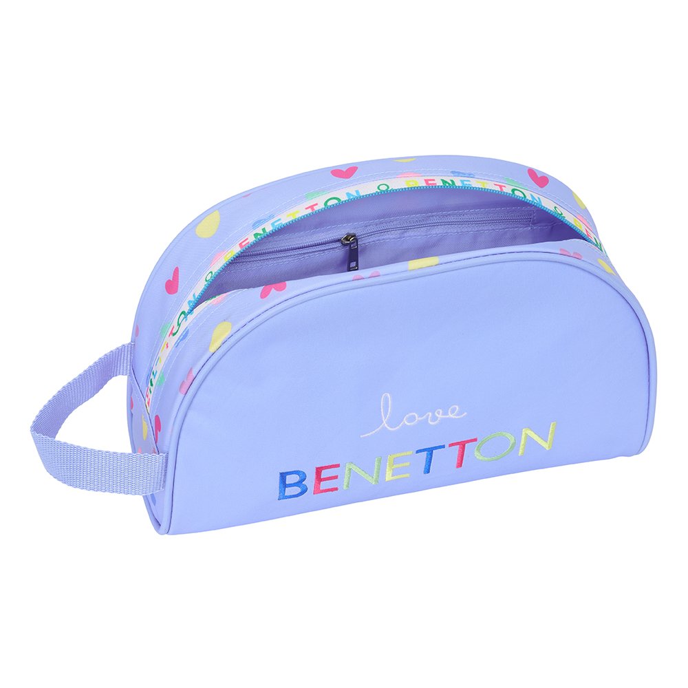 El neceser Benetton Love es el complemento ideal para organizar productos de higiene, maquillaje o pequeños accesorios. Su diseño en color lila con estampado de corazones multicolor y el logo Benetton lo convierten en un accesorio práctico y con mucho estilo.
