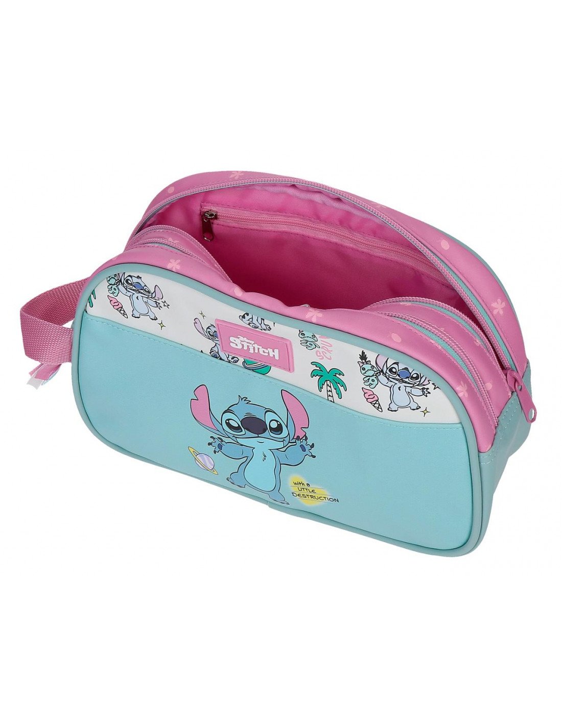 El neceser adaptable Stitch “Little Destruction” es el complemento perfecto para llevar todo organizado en el cole o de viaje. Inspirado en el personaje de Lilo & Stitch, combina un diseño encantador en tonos rosa y turquesa con divertidos estampados de Stitch.
