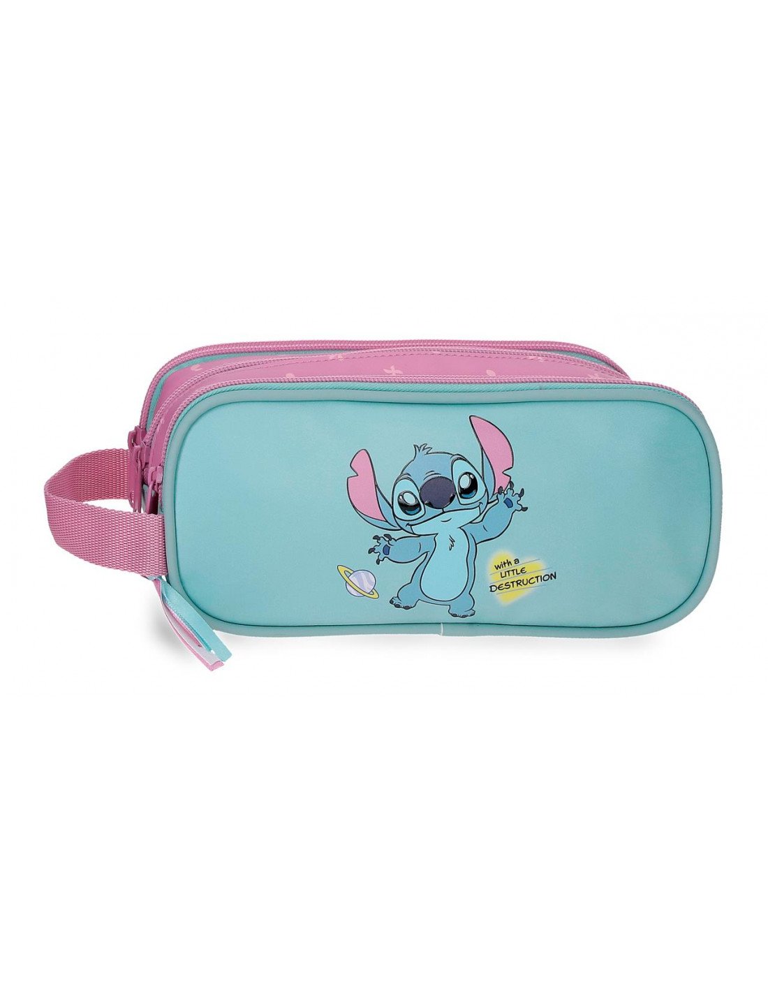 Neceser Stitch con 3 compartimentos independientes. Diseño Disney Little Destruction, práctico y resistente. Ideal para cole o viaje. 🎒✨ 016211