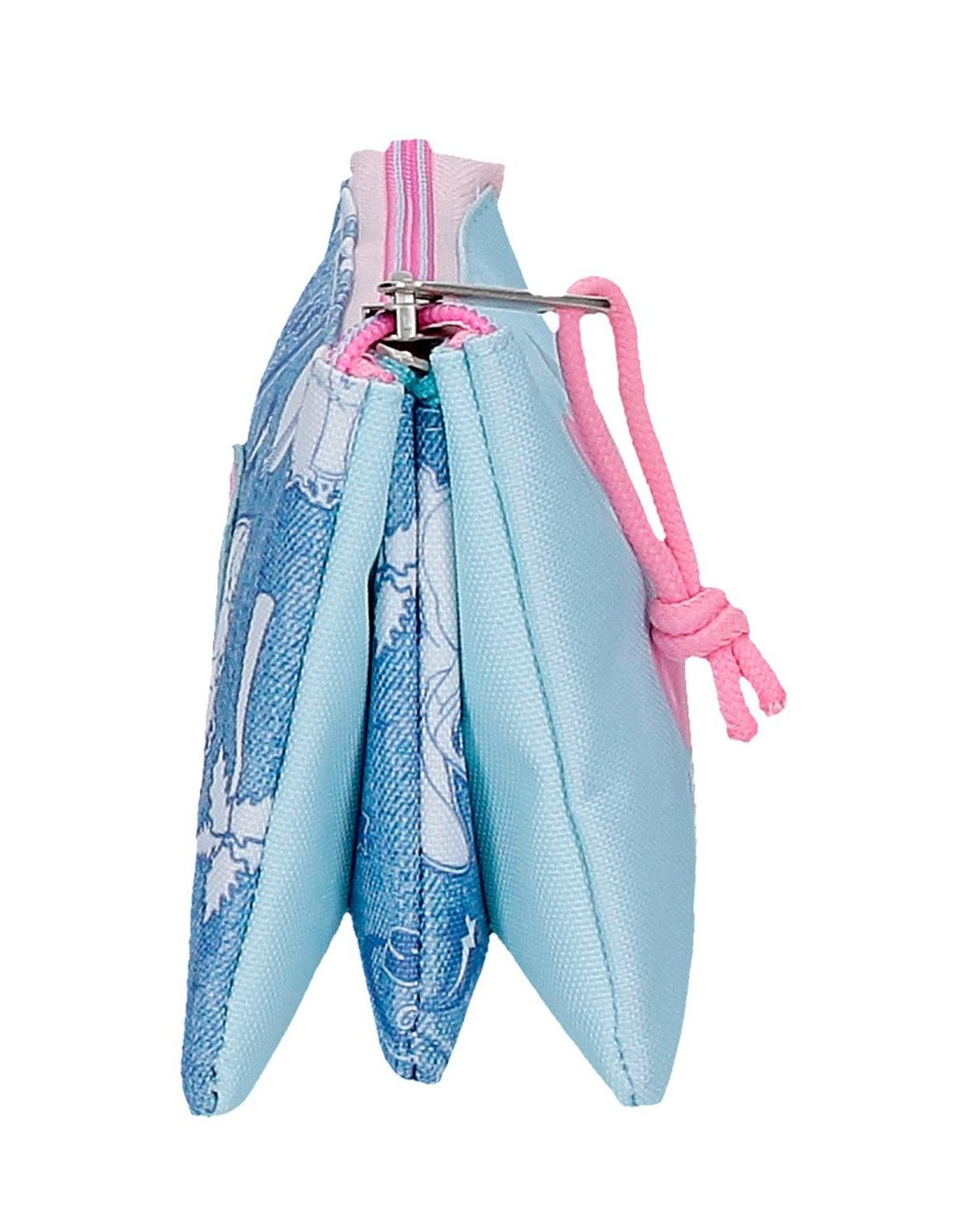 Dispone de tres compartimentos independientes con cremallera, perfectos para separar maquillaje, material escolar o pequeños accesorios. Su formato compacto pero amplio lo hace muy práctico tanto para el día a día como para viajes.