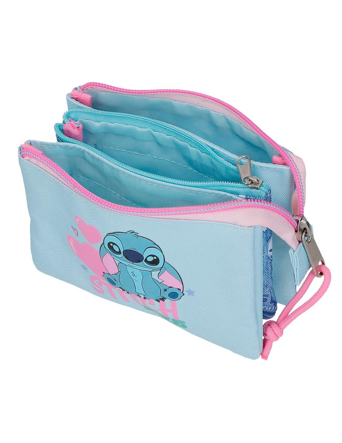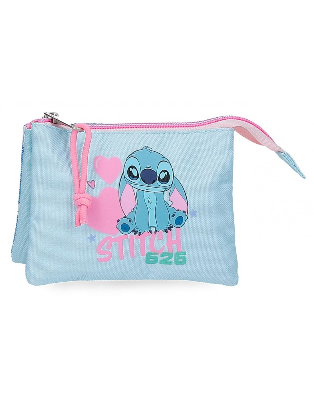 El neceser triple Stitch “Hearts” es la opción ideal para mantener todo organizado con estilo. Inspirado en el adorable universo de Lilo & Stitch, combina un diseño en tonos azules y rosas con ilustraciones de Stitch y detalles de corazones.