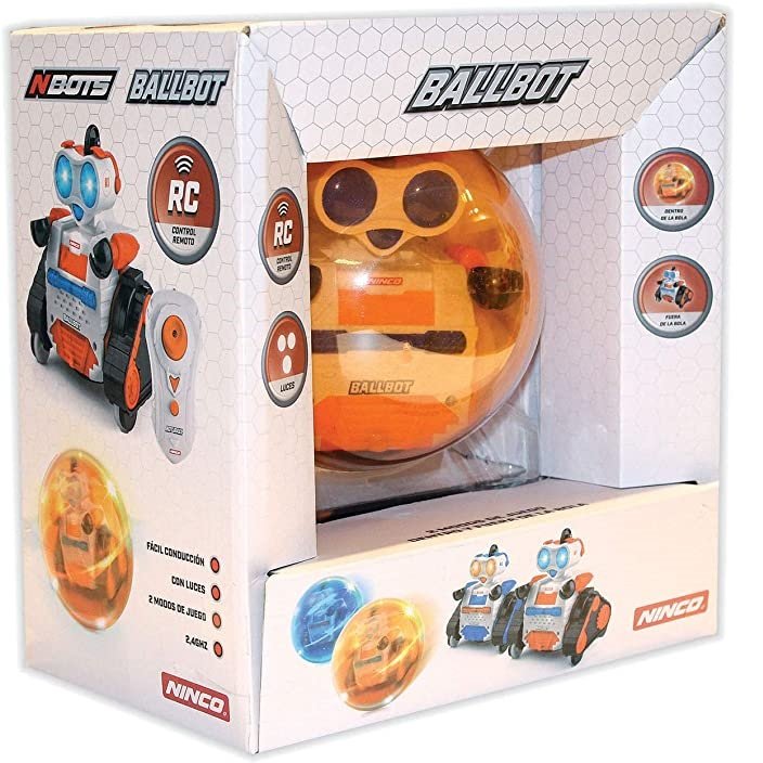 Es intuitivo, divertido y no para de rodar, es BALLBOT. El robot con dos opciones de juego, fuera de la bola o dentro para desplazarte en todas direcciones. Requiere 4 pilas AA para robot y 2 pilas AA para emisora. Con música. Recomendado a partir de 4 años.