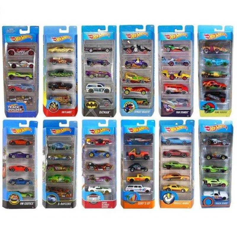 • Cada pack incluye cinco vehículos Hot Wheels.