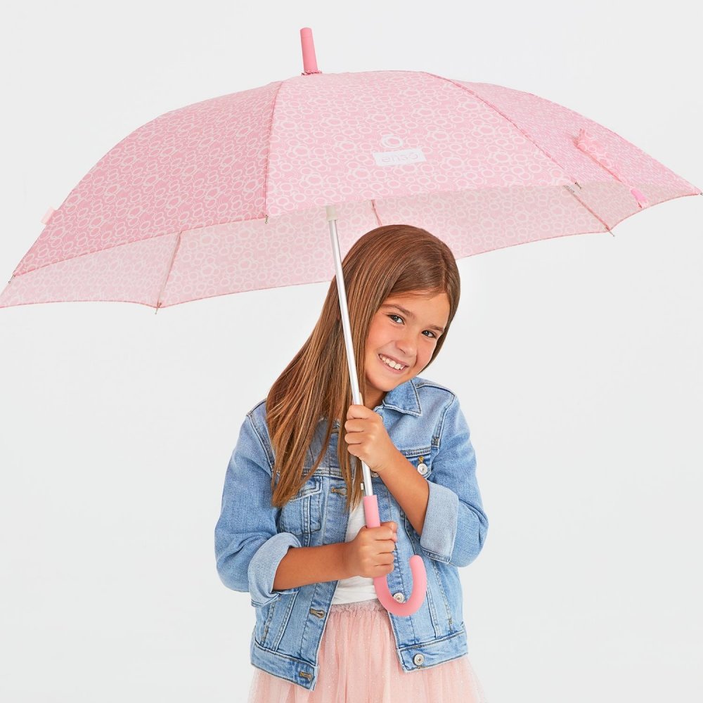 Un día lluvioso puede ser hermoso si sales preparado para disfrutar bajo un buen paraguas. La colección Mess de Enso cuenta con paraguas estampados con burbujas y viene en tres colores muy dulces para que tu niña se sienta tranquila paseando bajo la lluvia. Fabricados en poliéster con varillas de aluminio, estos paraguas ofrecen gran cobertura y resistencia a ráfagas de viento.