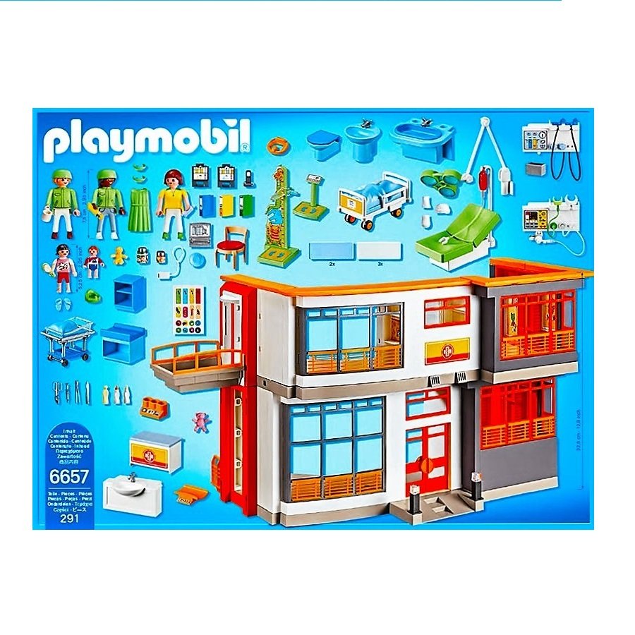 El hospital infantil de Playmobil es el número 6657 de la serie City Life y cuenta con dos plantas en las que podemos diferenciar diferentes salas como un quirófano totalmente equipado o una sala de maternidad.