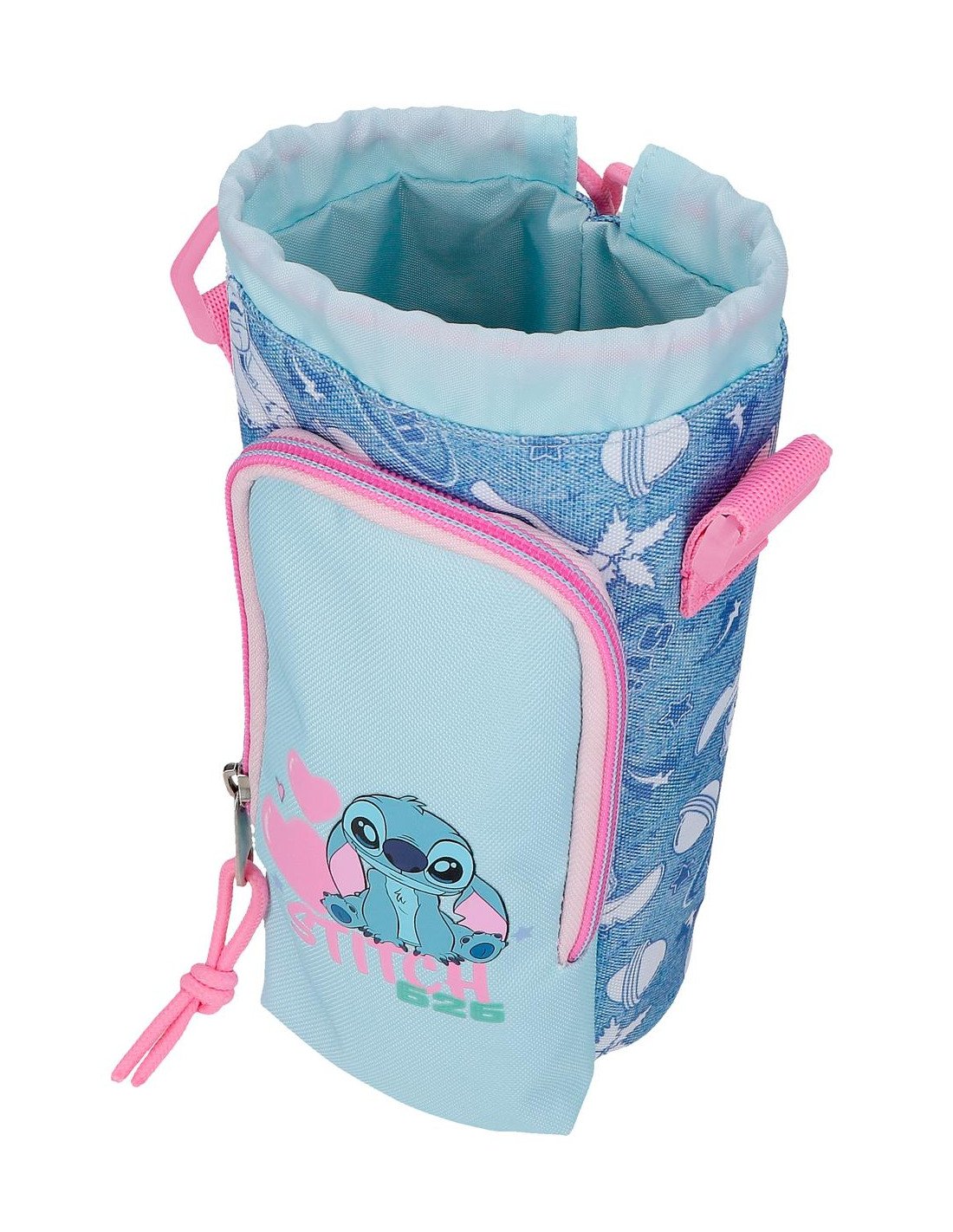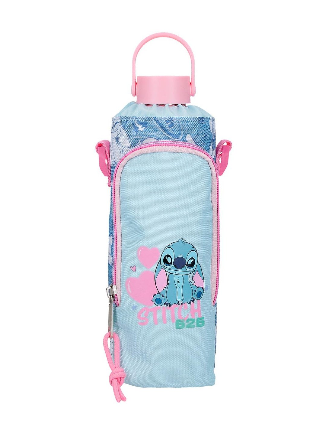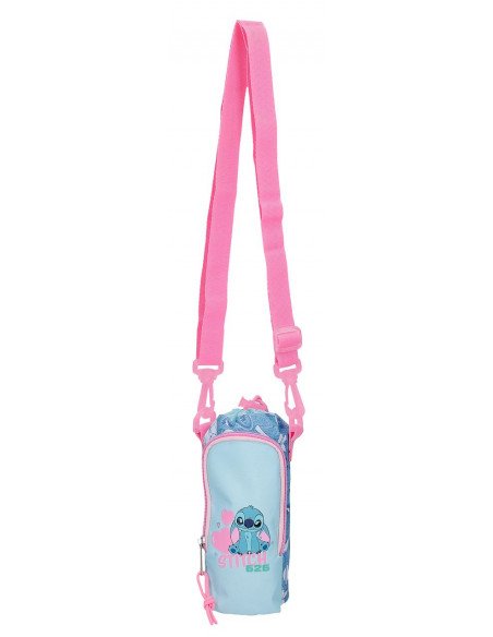 Portabotella Stitch con bandolera ajustable y bolsillo frontal. Ideal para cole, excursiones o deporte 💖🧃 014651
