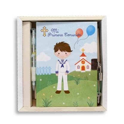 Diario con candado y boligrafo de primera comunión con 90 páginas, en su cajita regalo.