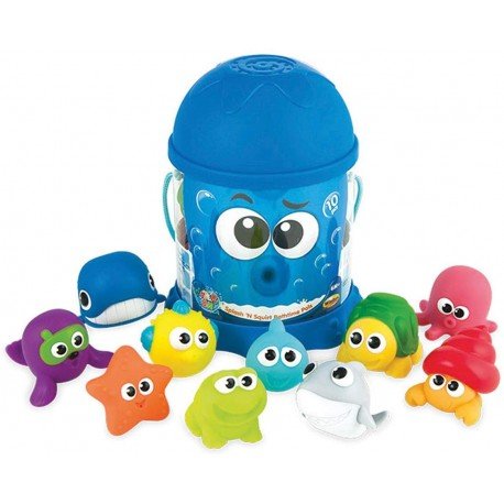 Bote lleno de animalitos blanditos para el baño con 10 piezas diferentes marinas para jugar en el agua.