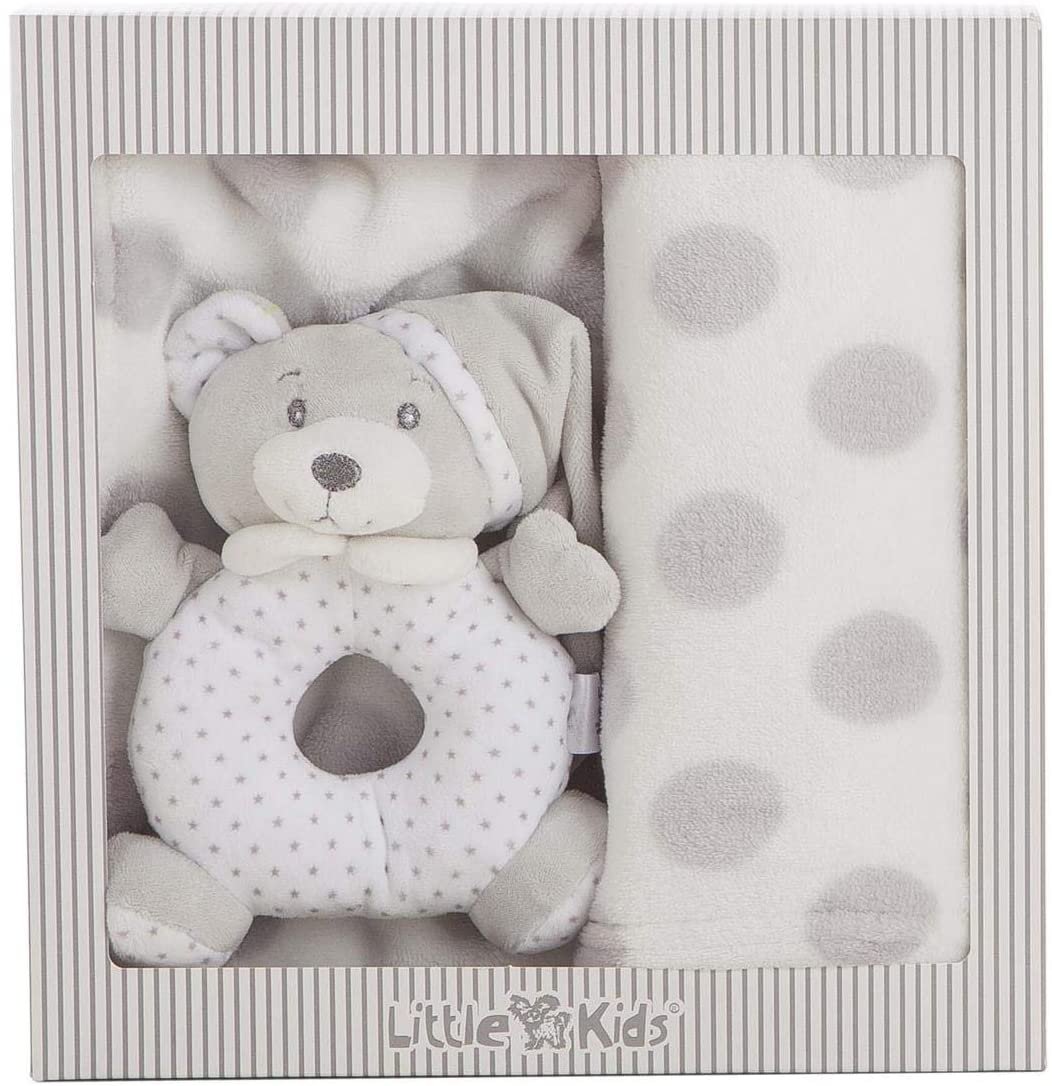 Set Regalo Bebe con Manta y Sonajero Gris