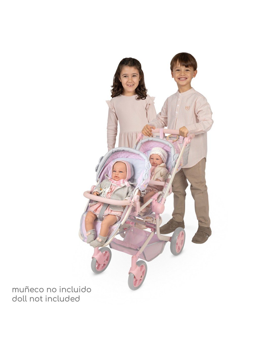 Descubre el carrito gemelar más alto del mercado, el manillar se encuentra a casi un metro de altura, con estructura plegable y sillas con multiposición, para disfrutar de tus bebés como siempre has soñado. Este espectacular Carro de Muñecas Gemelar de la inspiradora colección Sophie, es una oportunidad sin igual de salir a pasear en familia, disfrutando del potencial que aporta al desarrollo de habilidades en los peques, el juego de imitación más completo y mágico.