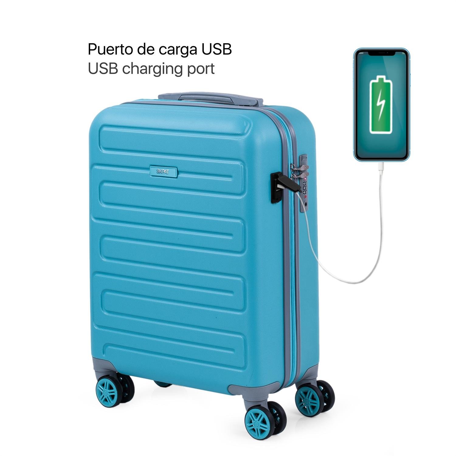 La maleta dispone de un puerto USB exterior para la carga de dispositivos. Móvil, tablet, ordenador portátil, etc.