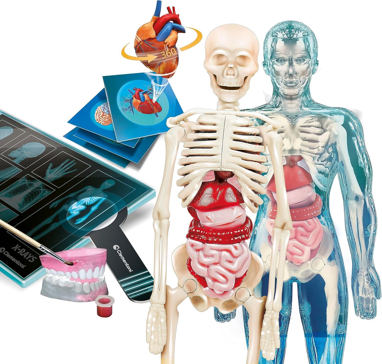 • 🧍‍♂️ Incluye un modelo del cuerpo humano con esqueleto, órganos internos y cubierta transparente.