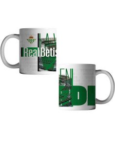 Taza oficial del Real Betis de cerámica con diseño moderno “La vida en verde”. Ideal para desayunos, oficina o como regalo para fans verdiblancos.