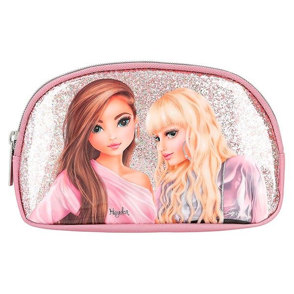 Neceser de TOPModel Glitter Queen con mucho brillo y glamour. Lleva en la cara delantera la imagen de una modelo sobre un fondo maravillosamente brillante. El neceser está totalmente cubierto con piedrecitas de estrás por detrás.
