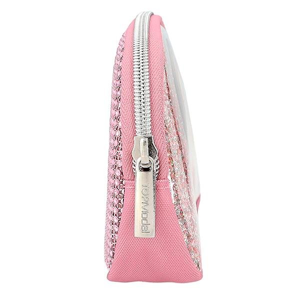 Con cremallera y mucho espacio para todos los artículos de belleza importantes.