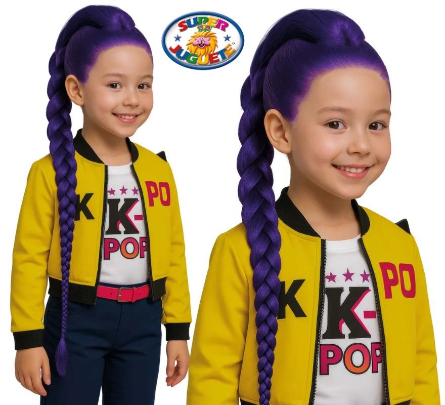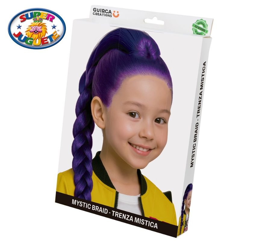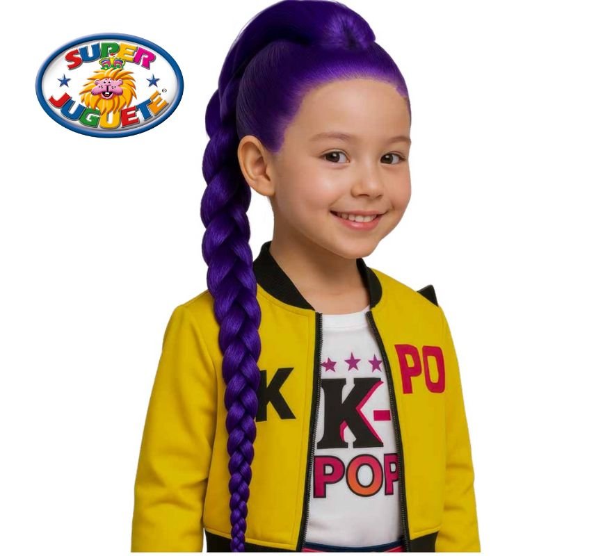 Trenza mística morada para niña. Accesorio ideal para disfraces, carnaval y fiestas temáticas. Ligera, llamativa y perfecta para looks pop y K-Pop.