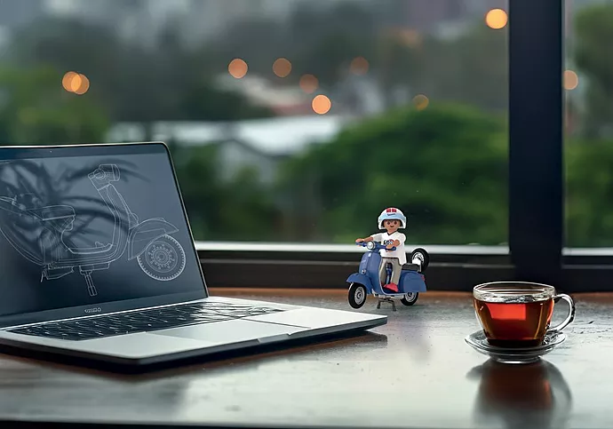 ¡Dale estilo a tus aventuras con esta clásica Vespa azul de Playmobil! 🚙💨
