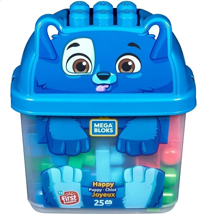Caja de juguetes en forma de leóncon 25 bloques de construcción